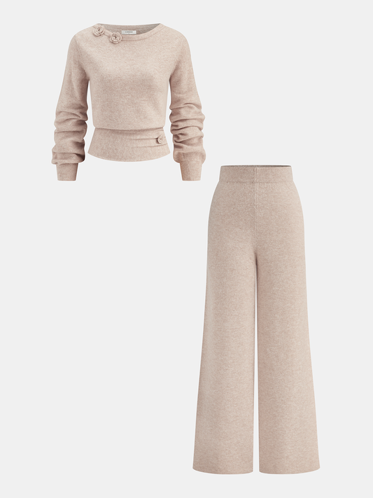 3D Floral Embellished Cinched-Waist Knit Top