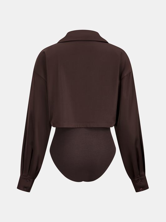 2 in 1 Satin Shirt Panel Bodysuit