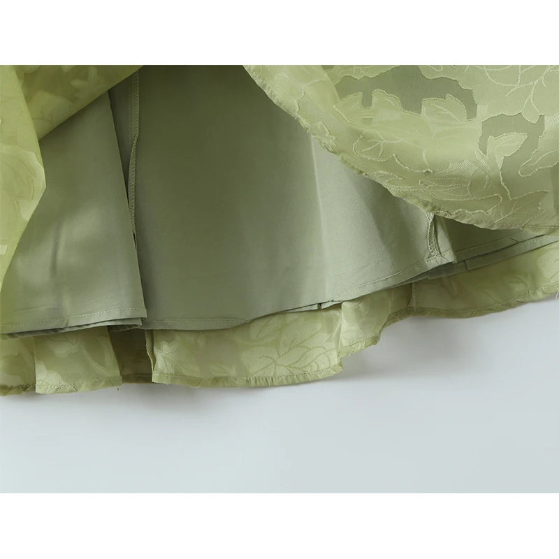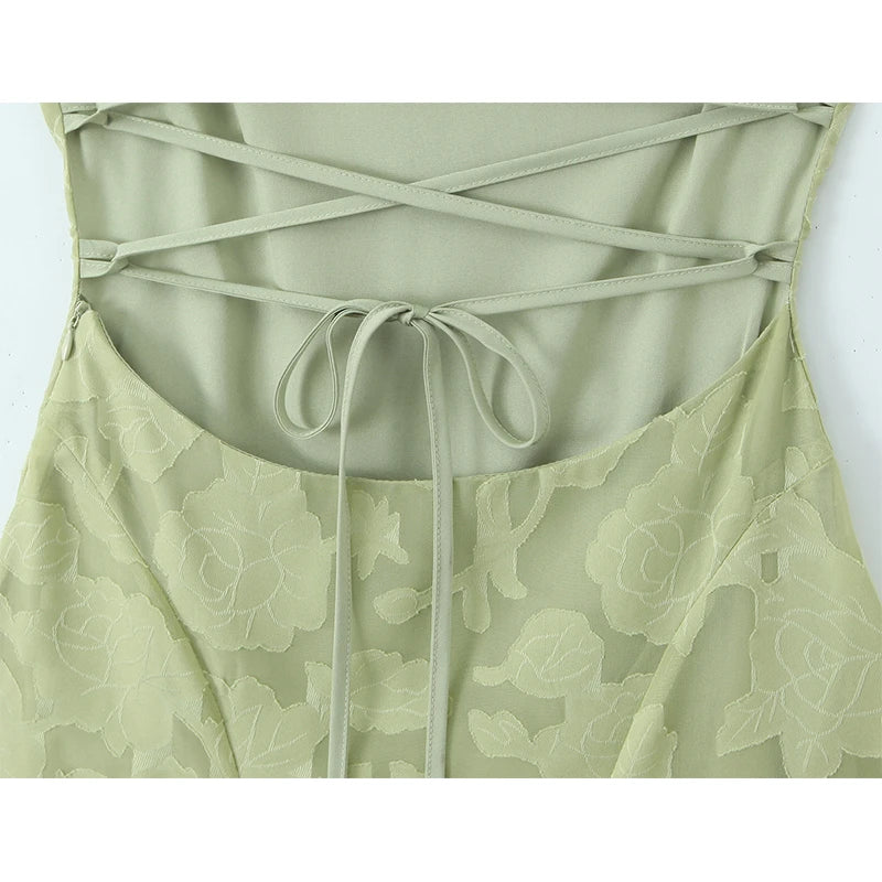 Embody ethereal grace with The Elara Floral Jacquard Maxi. A masterpiece of texture and light, this gown features a delicate, tonal floral pattern woven into a high-quality jacquard fabric that offers a subtle, three-dimensional depth. The slender crossover straps and squared neckline provide a modern, minimalist frame for the bodice, while the panel-constructed skirt flows into a fluid, floor-length silhouette. Designed for the woman who values botanical elegance and refined structure, it is the ultimate statement piece for garden weddings and high-end summer soirées.